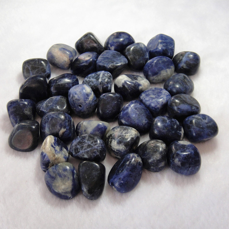 方钠石抛光不定型尺寸为2厘米左右。颜色以蓝色主,颜色比较均匀,少量含有白色,产自巴西。也可以做为一般的半宝石标本使用,也可以做为鱼缸石。