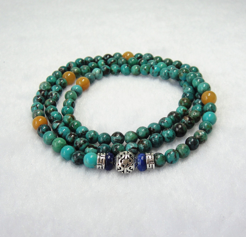 绿松石108颗佛珠手链 手串项链 天然松石配泰银 高档霸气