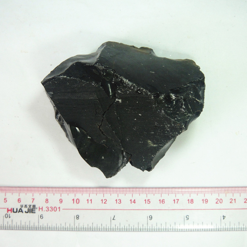 黑曜岩Obsidian又名十胜石,是一种自然产生的琉璃。即一种致密块状或熔渣状的酸性玻璃质火山岩。它的成因是因为火山熔岩迅速地冷却凝结,晶体结构没有足够的时间成长。 因为熔岩流外围冷却的速度最快,所以黑曜石通常都是在熔岩流外围发现。二氧化硅含量在70%左右,含水量一般小于2%。具深褐色、黑、红等颜色,成分与花岗岩相当。常具斑点状和条带状构造。内中充满磁铁矿、辉石成分的微晶和雏晶。致密块状,有时见石泡构造。玻璃光泽,具贝壳状断口。球粒较常见,有时很多,并排列成层。含水量较少,可与珍珠岩、松脂岩相区别。具明显的玻璃光泽。容重小,膨胀性好,耐火度高,化学稳定性强,导热系数低,吸音性,吸湿性小,抗冻、耐酸、绝缘。